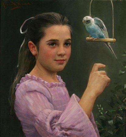 Художник Алан Бенкс "Девочка с попугаем"