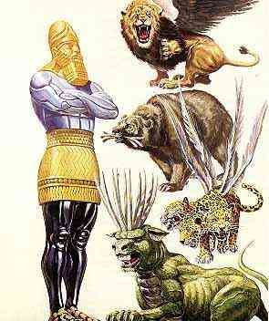 Еще одним пророческим Библейским прообразом процесса глобализации являются два видения открытых Богом ветхозаветному израильскому пророку Даниилу. Первое из них - об «огромном истукане, в великолепном блеске», как и второе - о «четырех больших зверях, вышедших из моря», пророчески иллюстрируют возрождение в конце веков четырех бывших величайших мировых империй, богопротивная сущность которых сконцентрируется в наши дни во вновь восстановленной Римской супер-империи.